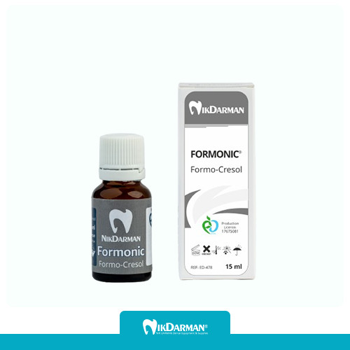 محلول فرموکرزول Formonic نیک درمان در درمان های اندودنتیکس جهت پالپوتومی و ضدعفونی کردن کانال ریشه های پوسیده یا نکروز شده استفاده میشود. فرمالین میکروب کش و تثبیت کننده بوده و تمام بافت داخلی و سخت را از بین می برد که باعث تخلیه راحت تر کانال می شود. کروزل به عنوان ضدعفونی کننده کارآمد عمل کرده و حساسیت ناشی از فرمالین را کاهش می دهد.
