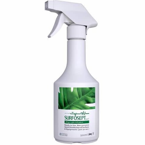 محلول ضدعفونی سطوح سارفوسپت کوئیک 4 لیتری برای ضدعفونی و پاک کردن سریع سطوح و اشیاء، آماده مصرف، سریع الاثر (موثر فقط در 30 ثانیه)، بوی ملایم و مطبوع .